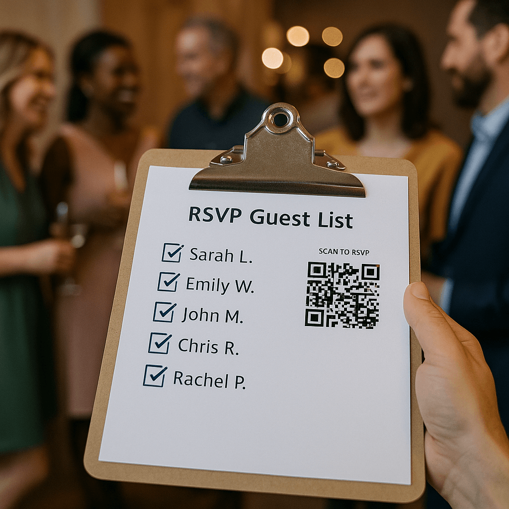 When scanned, this QR code leads attendees to a beautifully designed RSVP page where they can enter their name, leave a message, and confirm their attendance with just a few taps.
